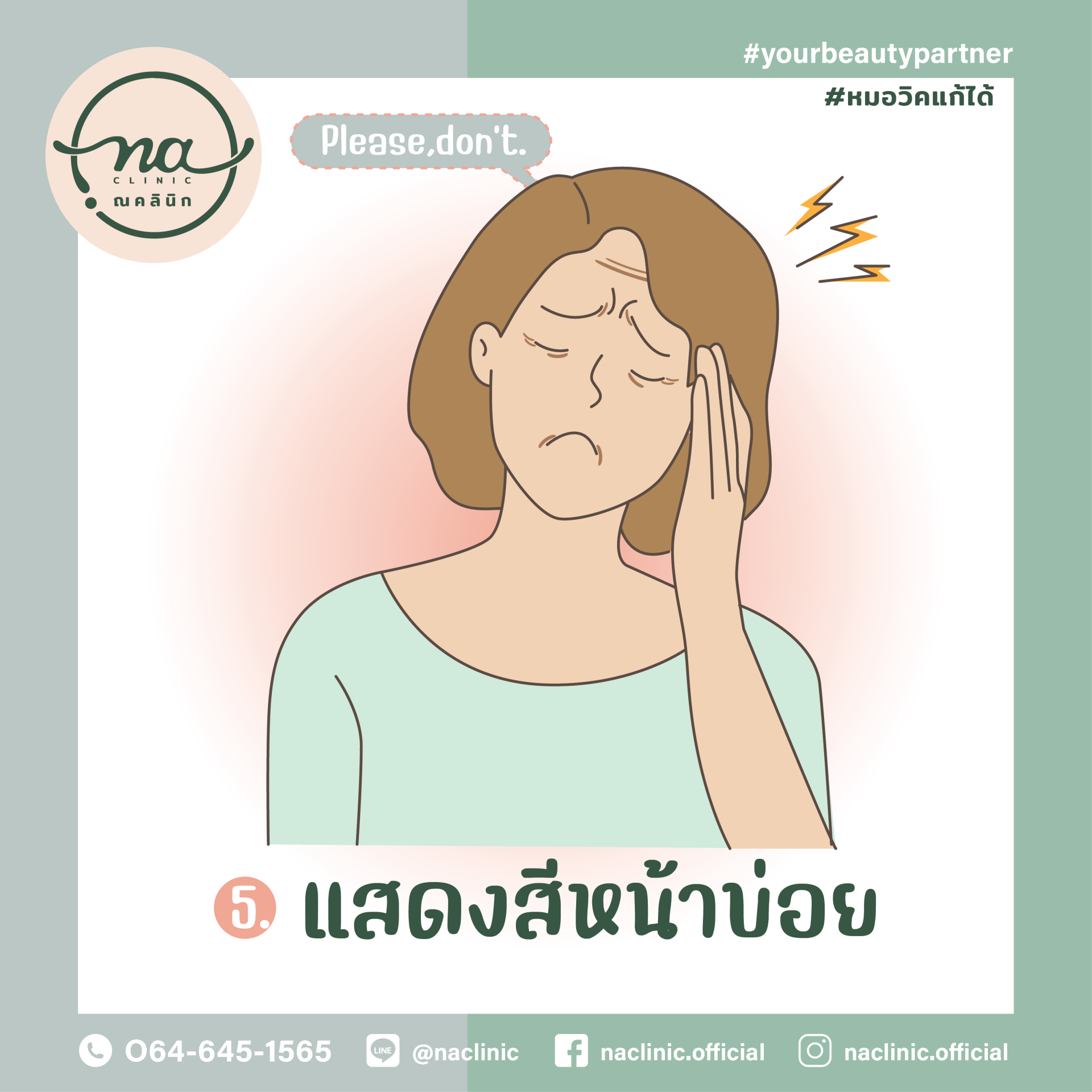 หลายคนมักแสดงออกทางสีหน้า เช่น การคิ้วขมวด เบะปาก ยักคิ้ว การแสดงสีหน้าเหล่านี้ทำให้กล้ามเนื้อชั้นใต้ผิวหนั งทำงานเยอะ จึงเกิด ริ้วรอย ร่องลึกก่อนวัย