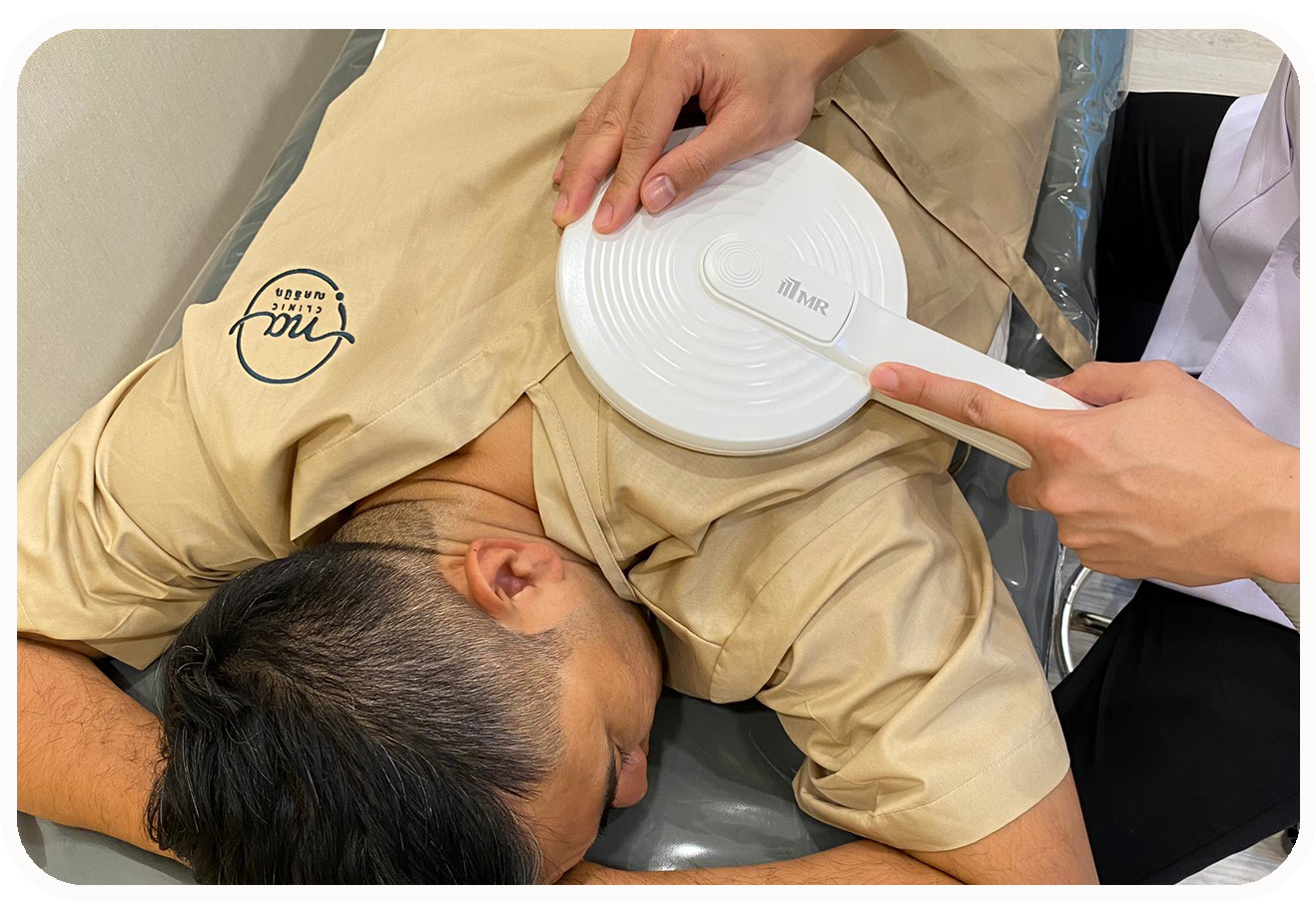 3. คลื่นแม่เหล็กไฟฟ้า (PMS : Peripheral Magnetic Stimulation) ลดอาการปวดตึงของกล้ามเนื้ออาการชาที่เกิดจากเส้นประสาทถูกกดทับหรือถูกรบกวน และกระตุ้นการทำงานของกล้ามเนื้อและเส้นให้ทำงานอย่างมีประสิทธิภาพมากขึ้น